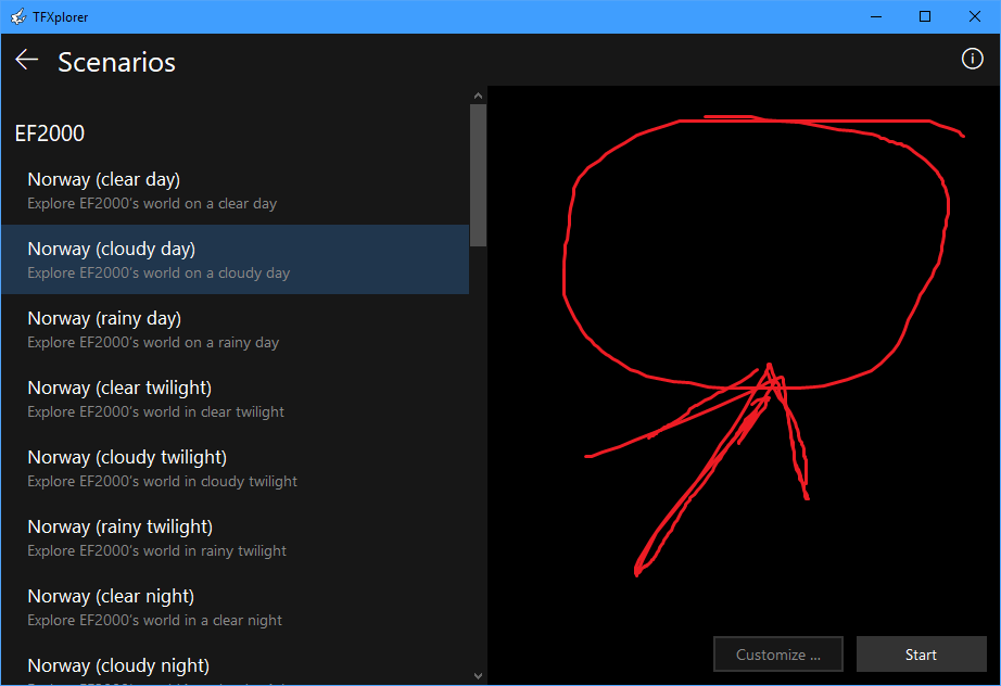 Most of the EF2000 scenarios have no description, except for Norway (Clear Day). Some even have TODO in their title.