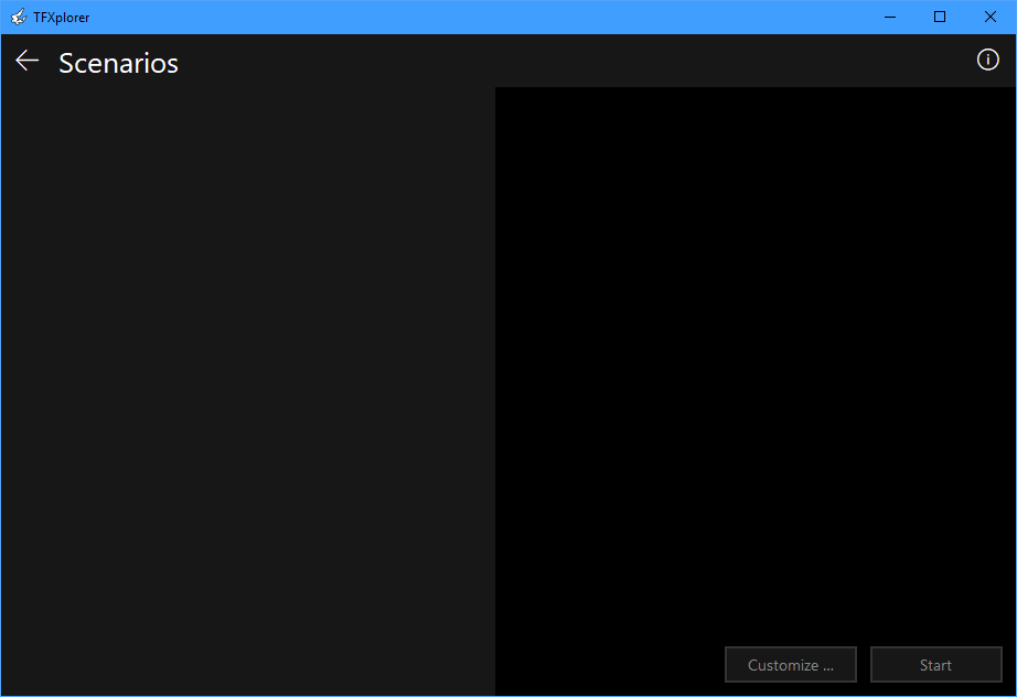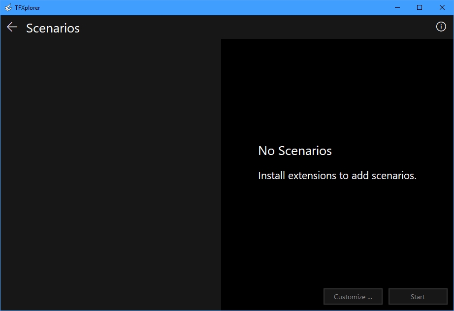 If no extensions are configured, and thus no scenarios are available, the Scenarios screen is utterly useless: