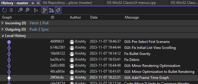 That’s very odd. In Visual Studio, go to Git > View Branch History. Do you see these commits? The 7th should be the relevant one.